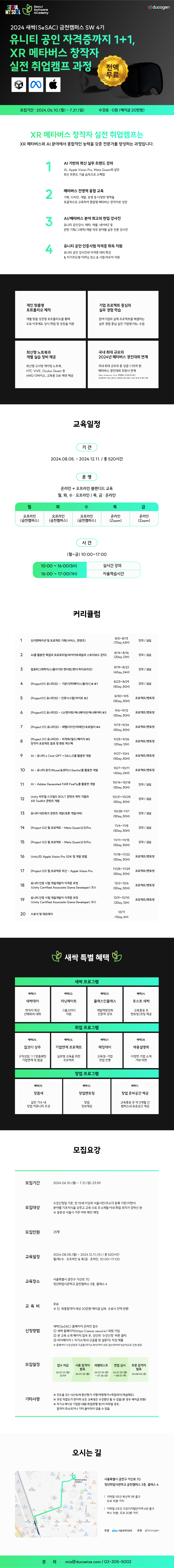 - 최신 트렌드 습득 및 파악: 학생들은 AI와 Apple Vision Pro/Meta Quest와 같은 최신 트렌드를 활 용하여 XR 메타버스를 배우며, 업계에서 요구하는 최신 기술과 동향에 대한 이해를 갖출 수 있음.